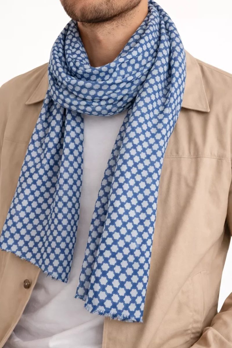 Accessoire Echarpe Coton Fleurs Bleu Moyen