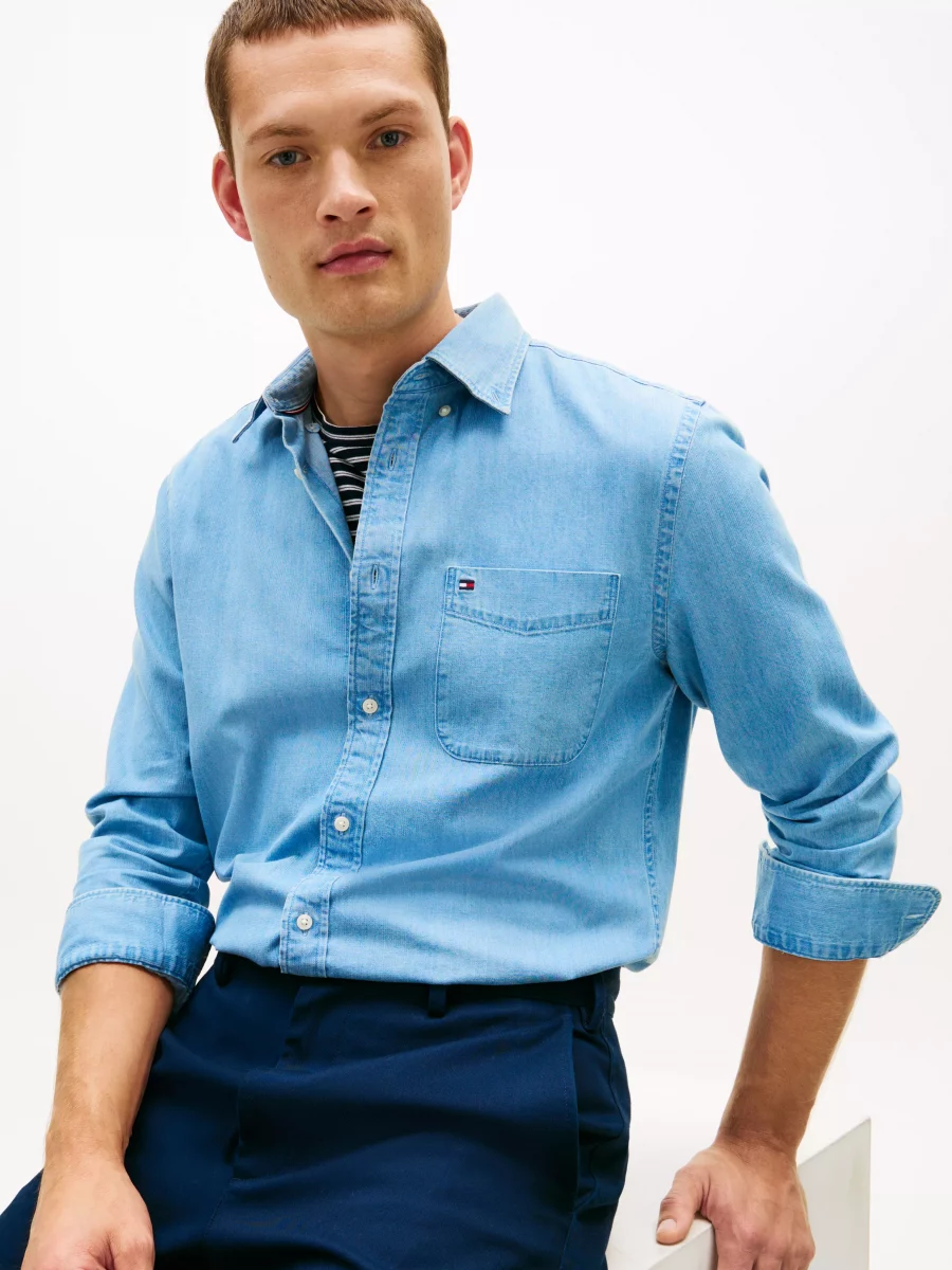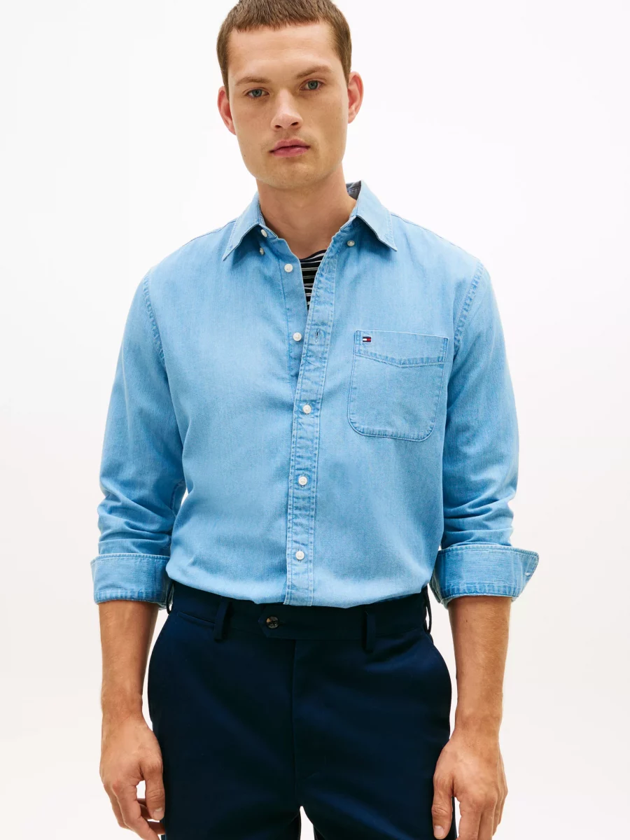Chemise Manches Longues Sport Chambray Bleu Clair