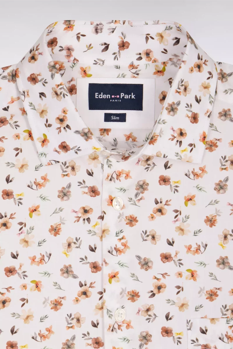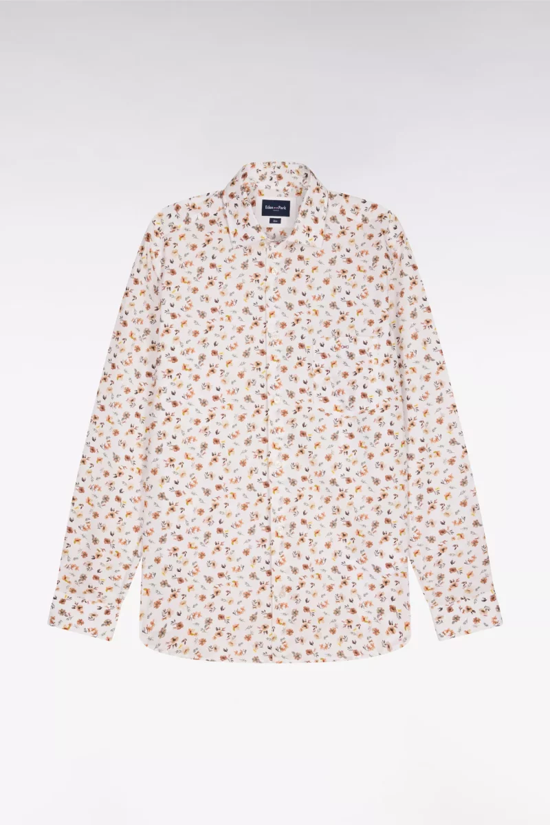 Chemise Manches Longues Sport Imprime Fleurs Beige Moyen