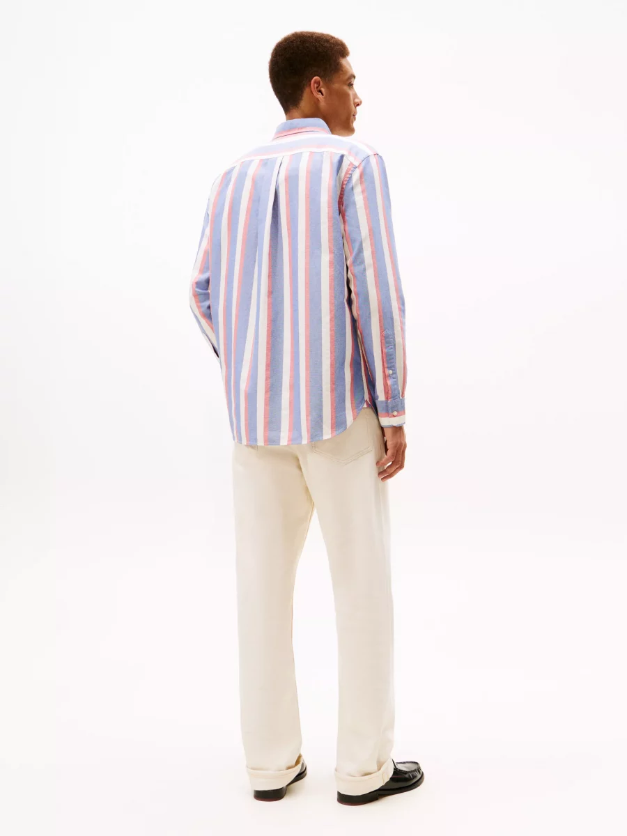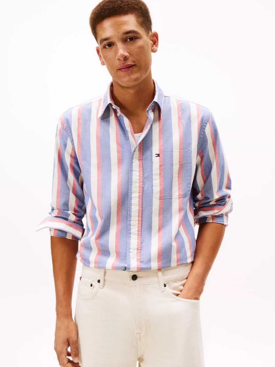 Chemise Manches Longues Sport Rayure Large Tricolore Bleu Moyen