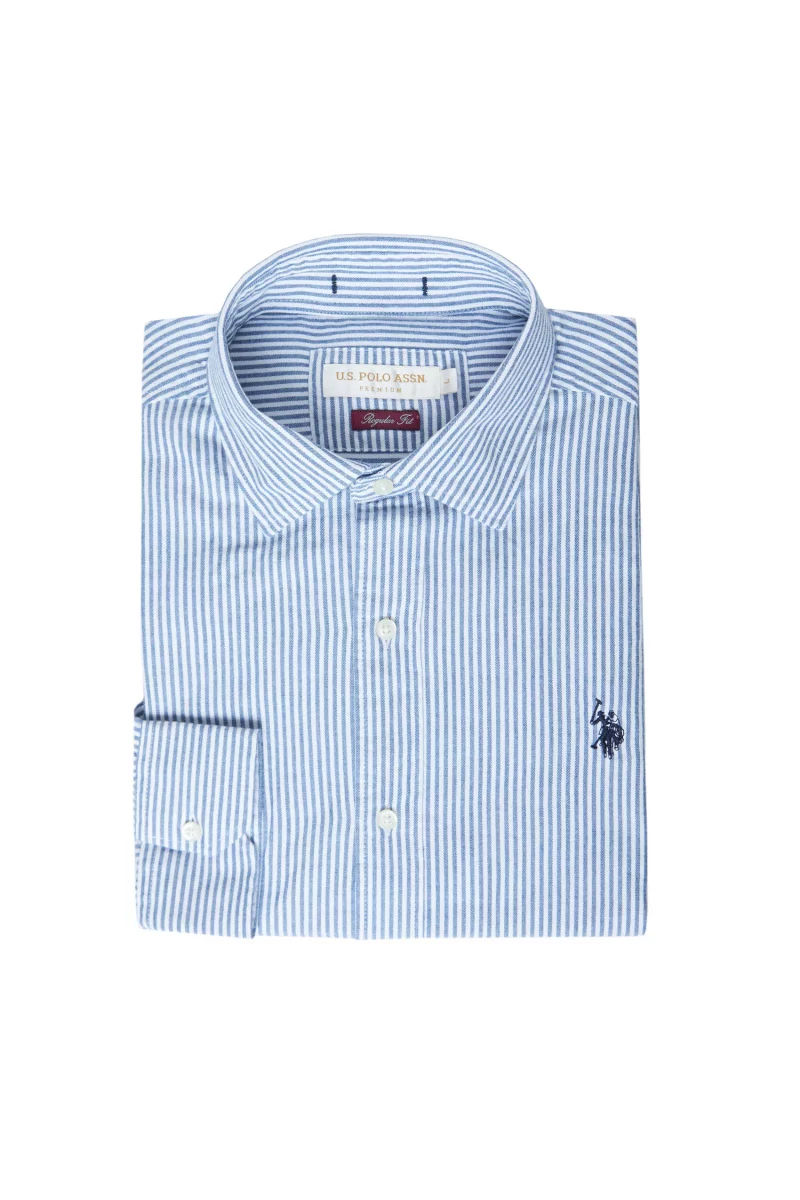Chemise Manches Longues Sport Twill Raye Gratte Bleu Moyen
