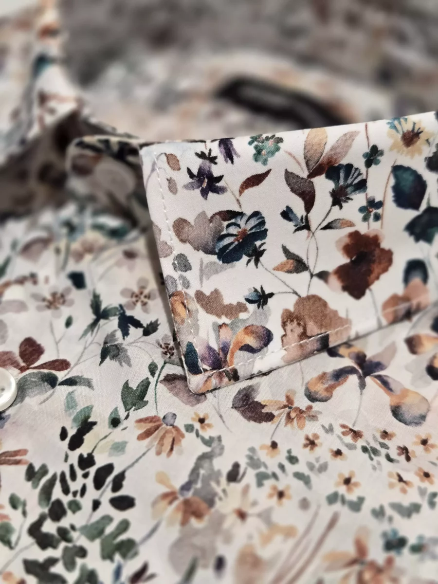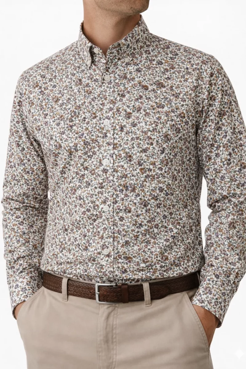 Chemise Manches Longues Ville Grandes Fleurs Modern-3 Rose Moyen