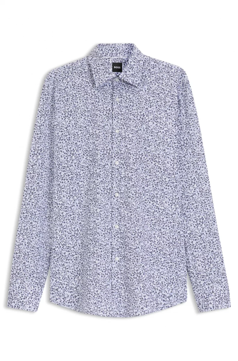 Chemise Manches Longues Ville Imprime Fleurs Bleu Moyen