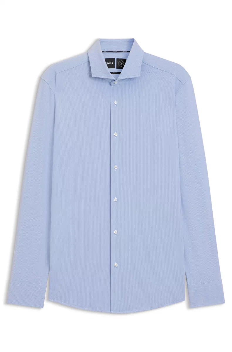 Chemise Manches Longues Ville Performance Faux Uni Bleu Clair