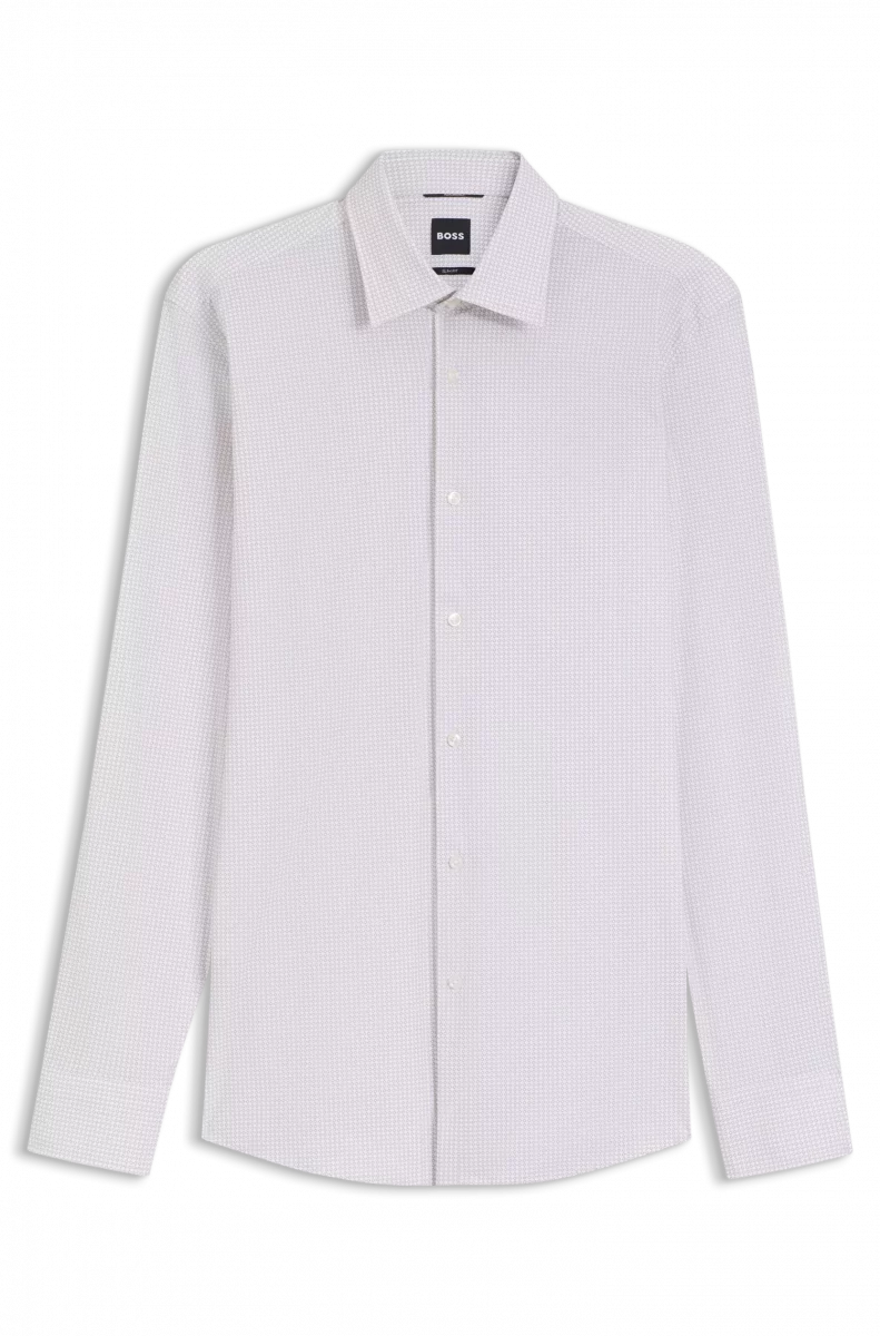 Chemise Manches Longues Ville Performance Imprime Carre Beige Clair