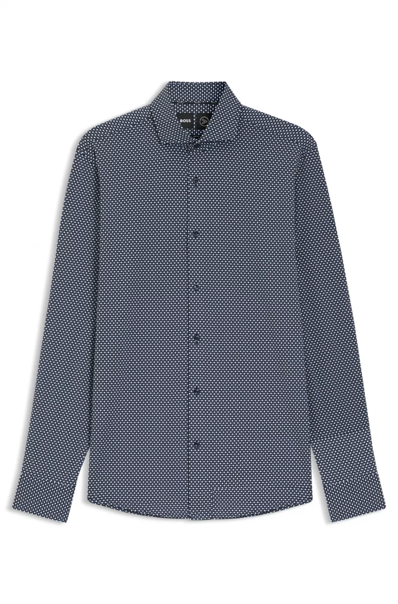 Chemise Manches Longues Ville Performance Losange Bleu Fonce