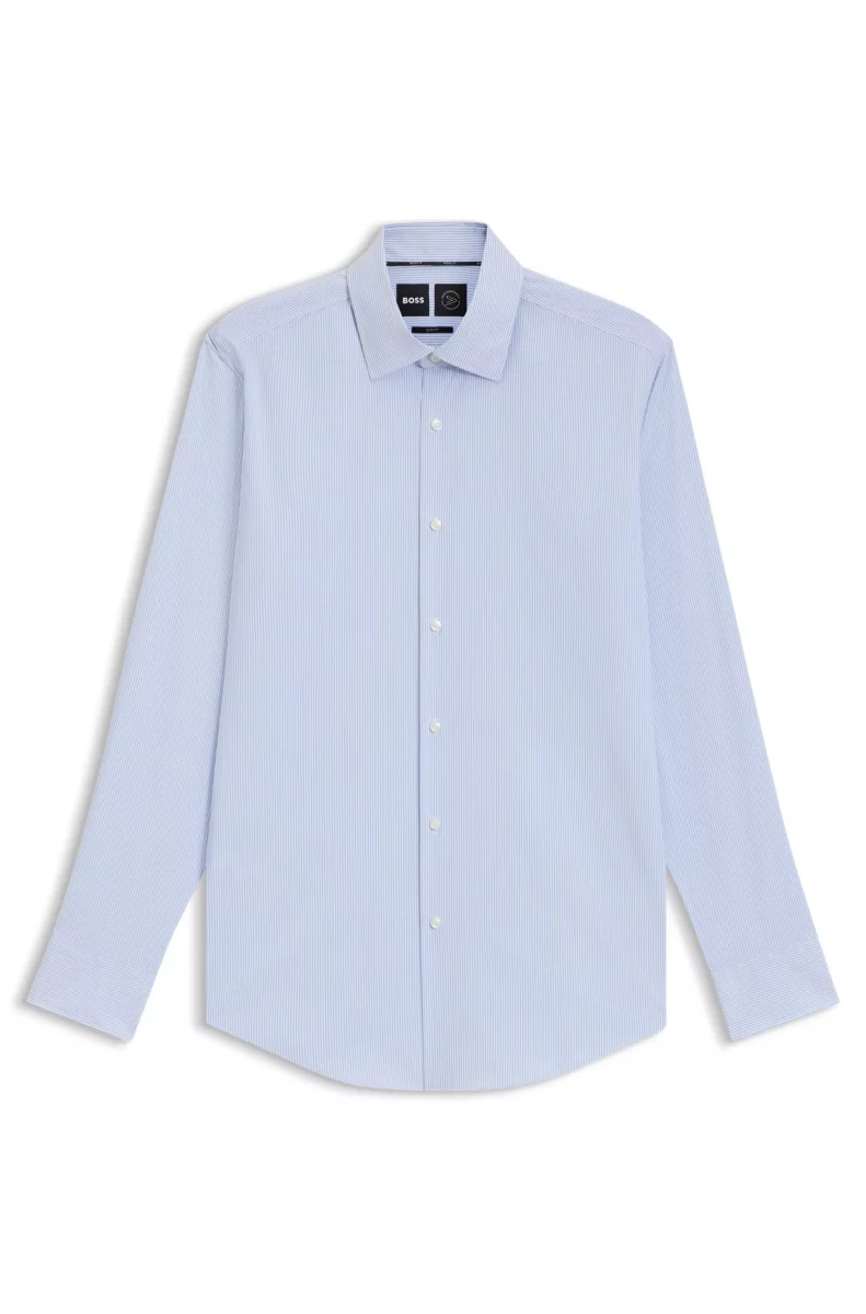 Chemise Manches Longues Ville Performance Rayure Baton Bleu Clair