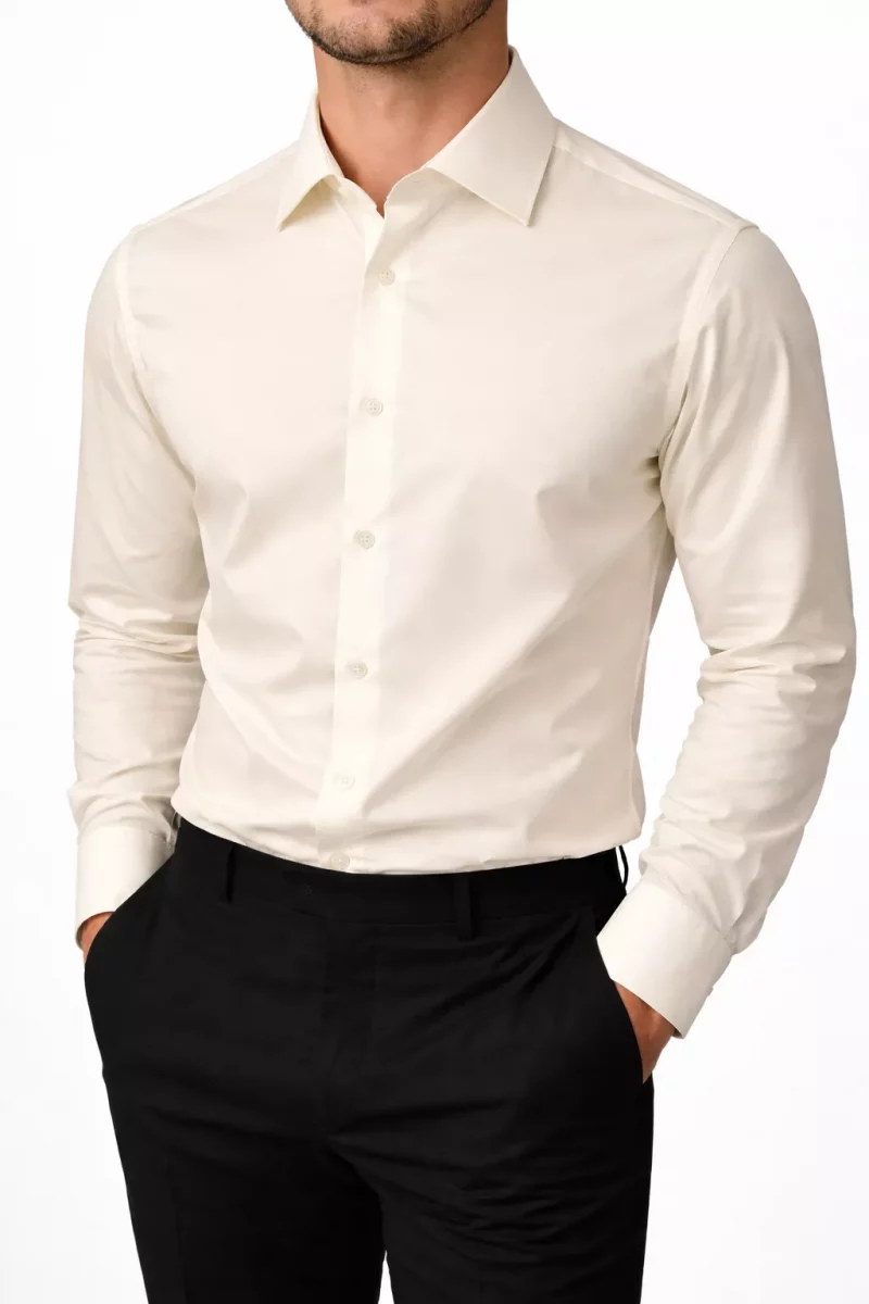 Chemise Manches Longues Ville Twill Uni Modern Psm Beige Clair