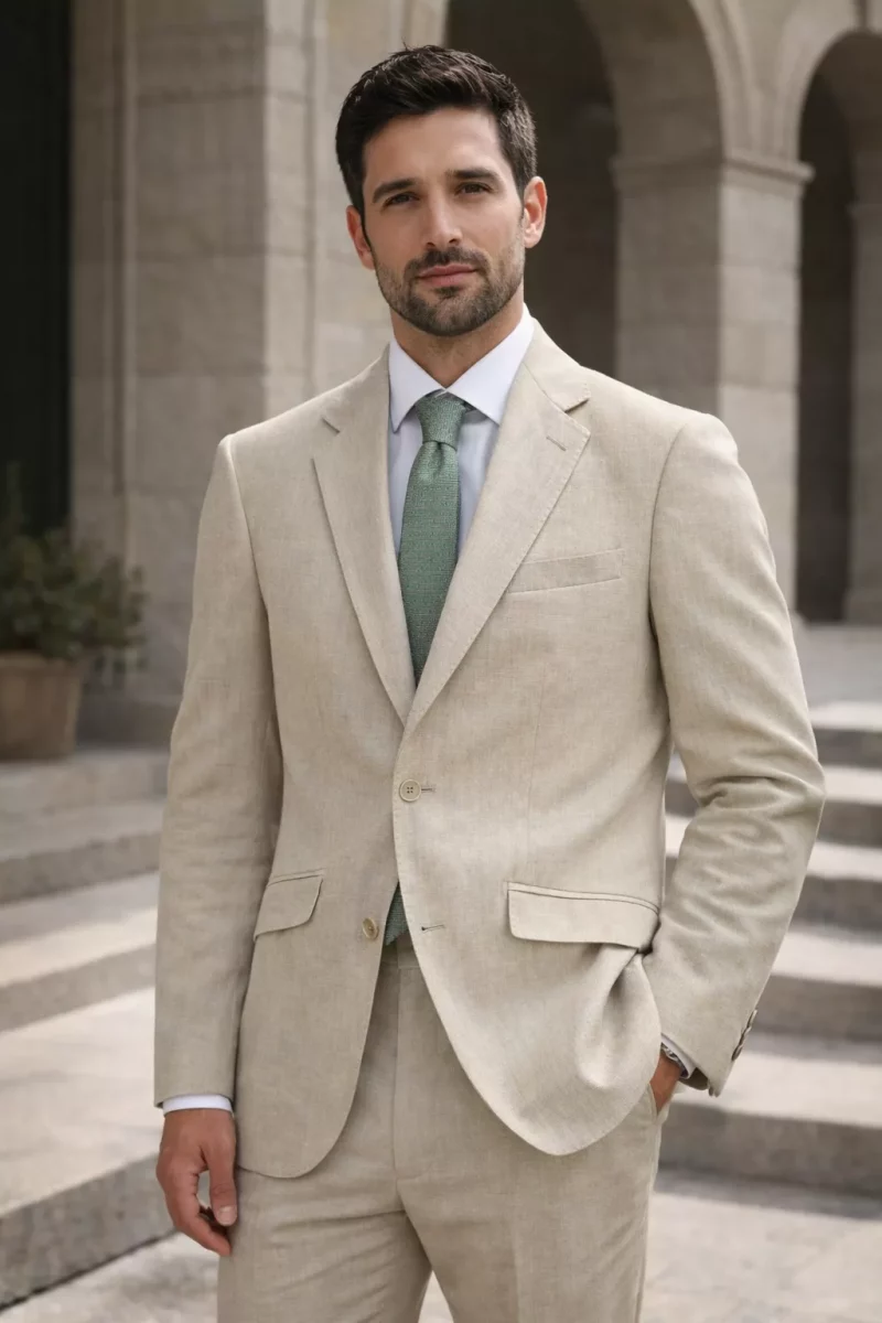Costume 2 Pieces Toile Lin Las Bang Beige Clair