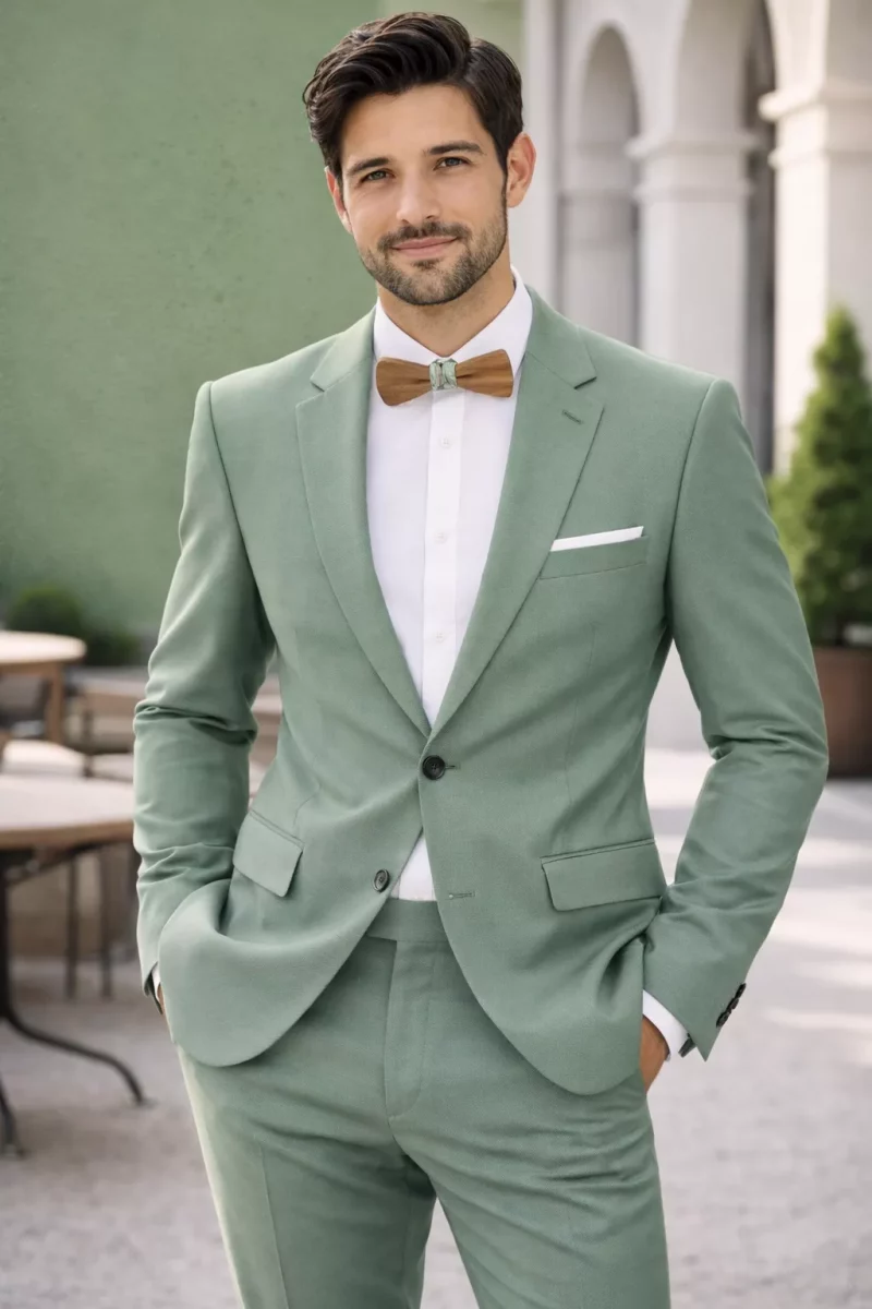 Costume 2 Pieces Toile Unie Las Bang Vert Moyen
