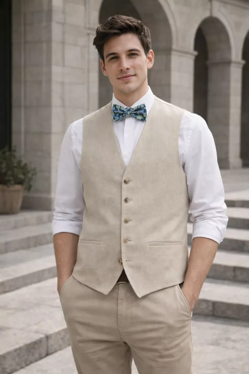 Gilet Ceremonie Toile Lin Casino Beige Clair