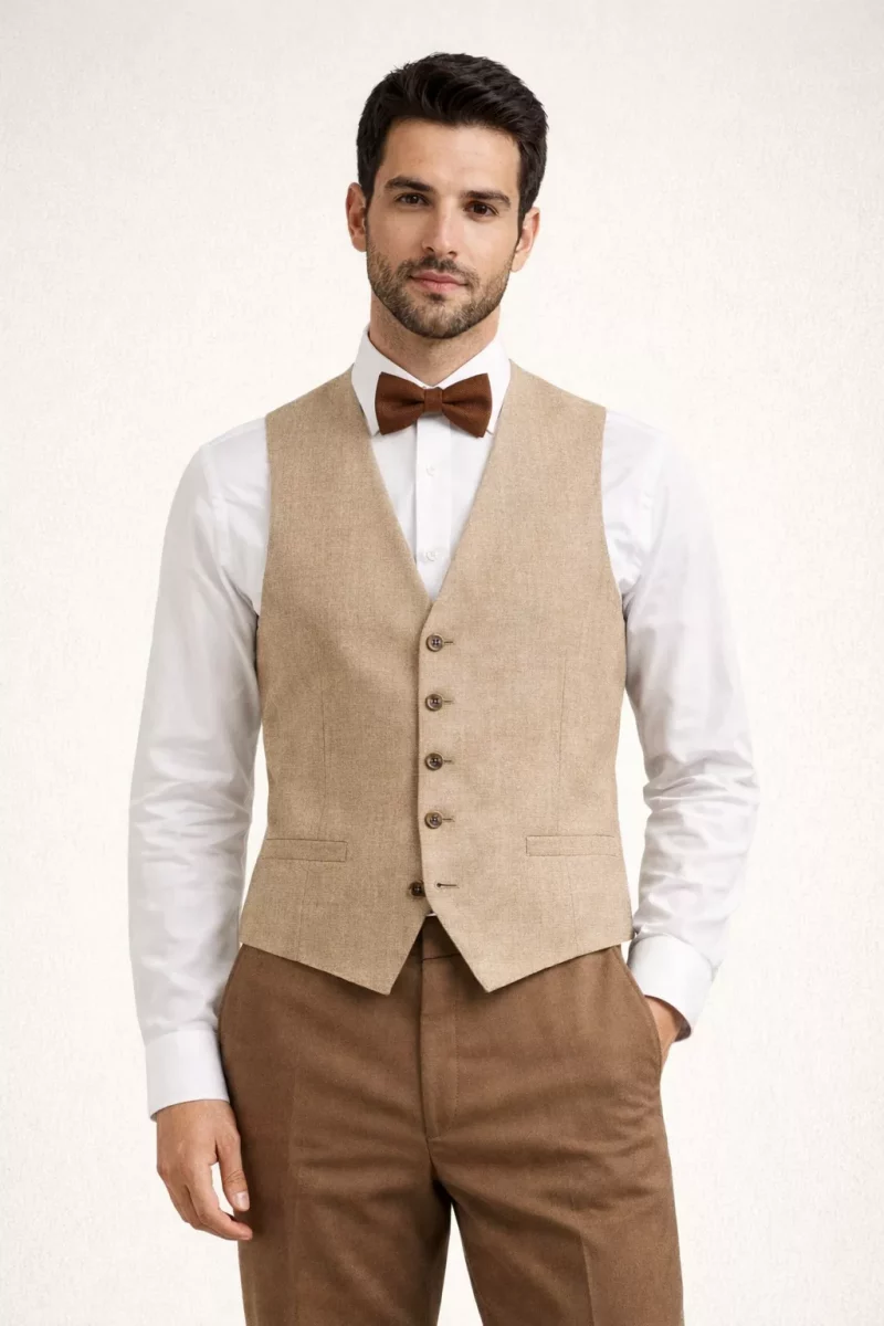Gilet Ceremonie Toile Lin Casino Beige Moyen