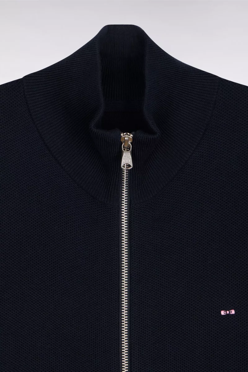 Gilet Manches Longues Nid Abeille Bleu Fonce